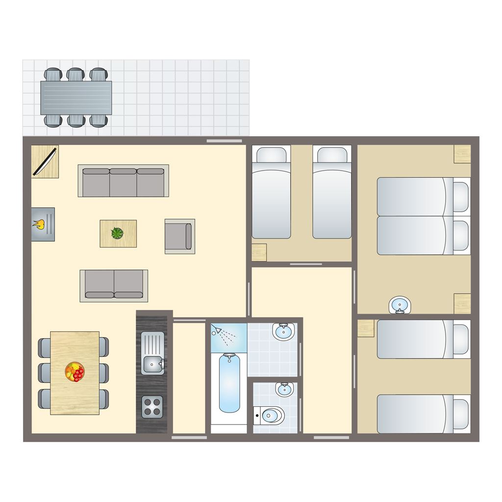 Beskrivelser, billeder, specifikationer og grundplaner af ferieboligerne er vejledende og kan variere.